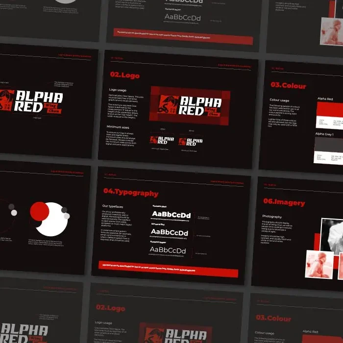 'Alpha Red Wing Chun', a Leicester based Wing Chun School. Drawing inspiration from the origins of Wing Chun, I developed a striking brand incoroporating the fundamental principle of the art - forward motion.
